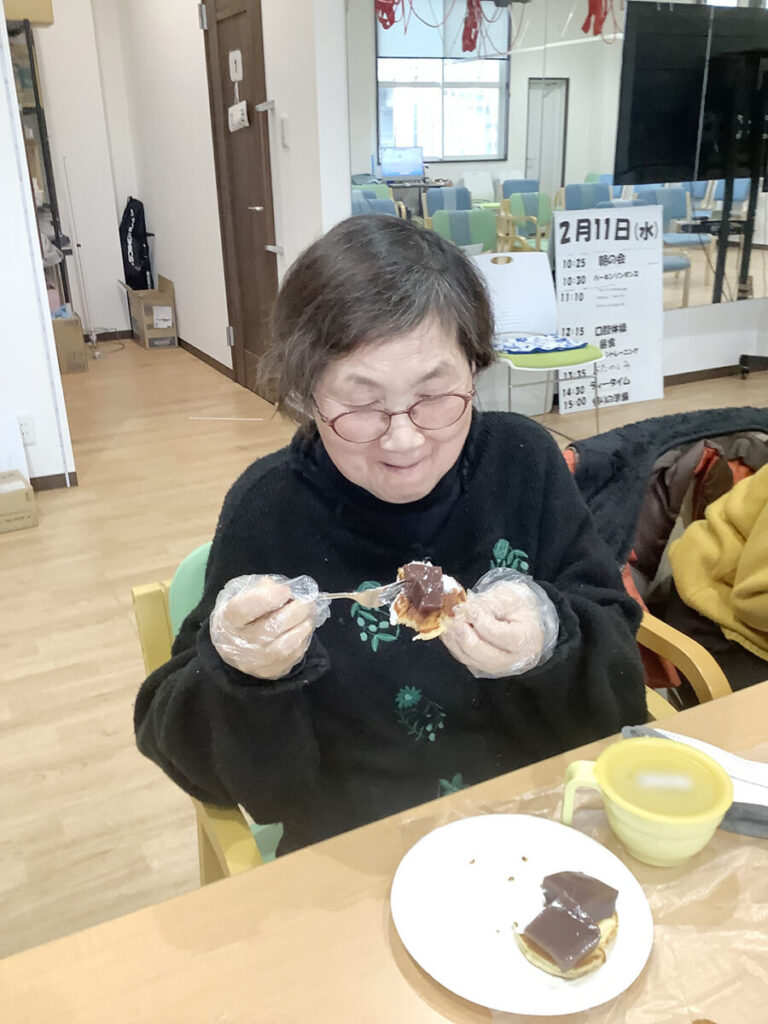 リニエデイサービス泉佐野では、2月9日〜13日までの5日間、おやつレクリエーションとして「どら焼き作り」を行いました。