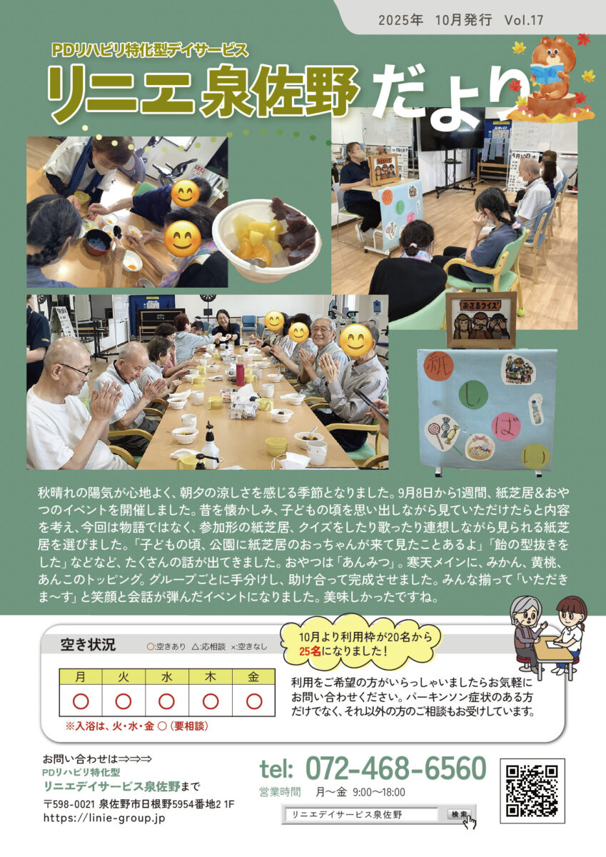 リニエデイサービス泉佐野 広報紙「リニエ泉佐野だより」を発行しました!