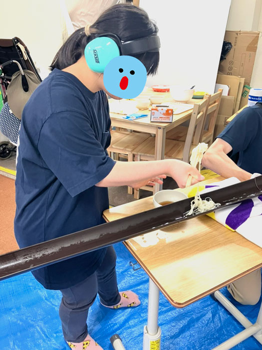 こちらも夏の風物詩。流しそうめんを事業所内で行いました。