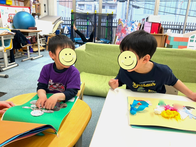 自分の作品を見返しながら、「これ作ったね!」と嬉しそうに話す子どもたちの姿がとても印象的でした。
