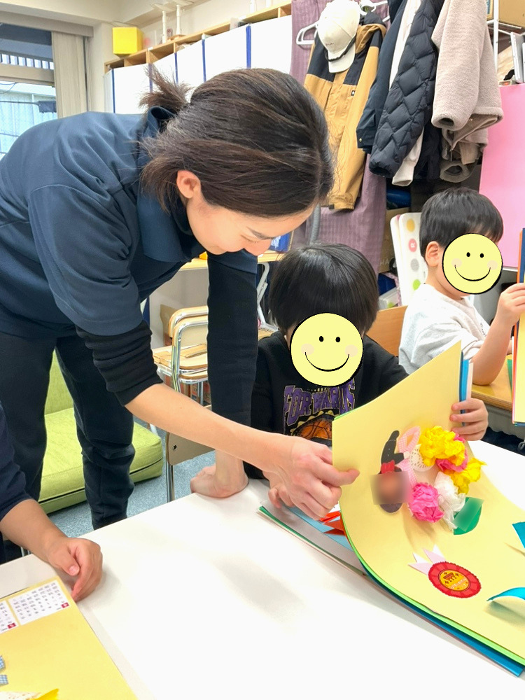昨年の4月当初は、緊張してお友だちの名前を呼べなかったお子さんも、3月になると「○○くん!」「○○ちゃん!」と自然に呼びかける姿が見られ、1年間の大きな成長を感じ、スタッフ一同嬉しく思いました。