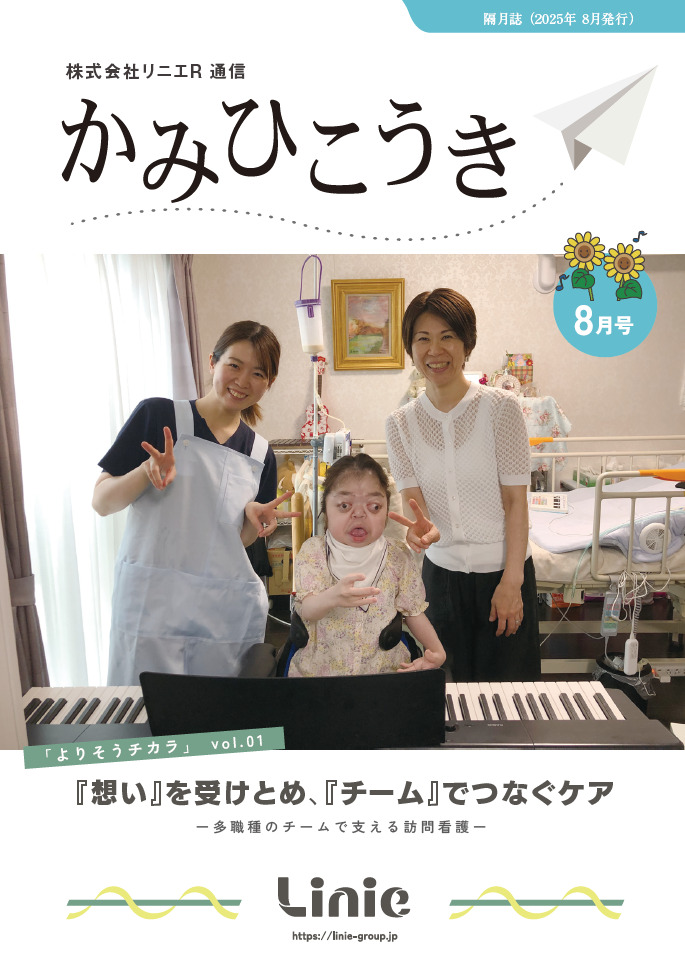 紙面では、私たちの取り組みや看護師・療法士の思い、なるほどな!とためになる豆知識、グループや事業所のニュースなどをお伝えしています。